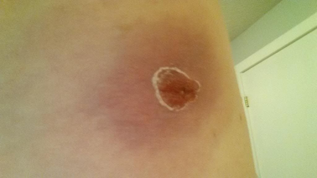Here’s a pic from earlier this morning, before I went to the doctor. The skin is peeling like Broomstick said it would.