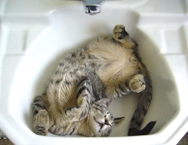 I guess she conquered her fear of heights last weekend, though, because I found her curled up in the sink Saturday morning.