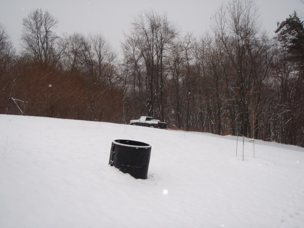 For contrast, the Wackjob’s back yard. They put the truck there when they moved in this past spring and it hasn’t moved since. WTF? The black barrel thing is my compost bin that is on the property line. I keep it in the woods, but move it closer to my house for the winter months. For perspective, the truck you see is about 200 yards from their house, which sits closer to the road than my house does.