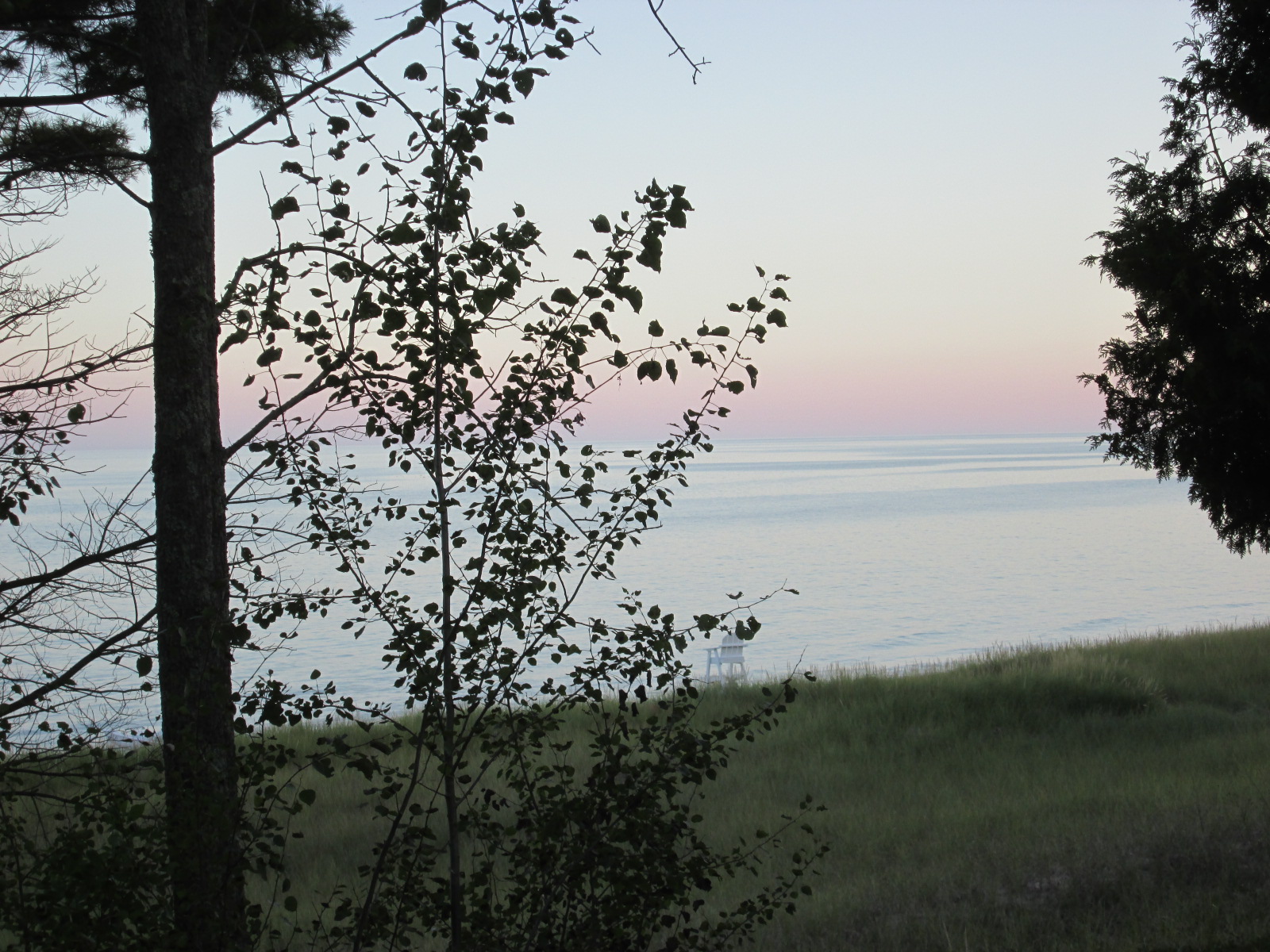 Yard grass, trees, neighbour’s place, lots more trees, edge of a neighbourhood road, sometimes that rabbit family, birds, sky (with or without clouds), my wife sometimes, etc…