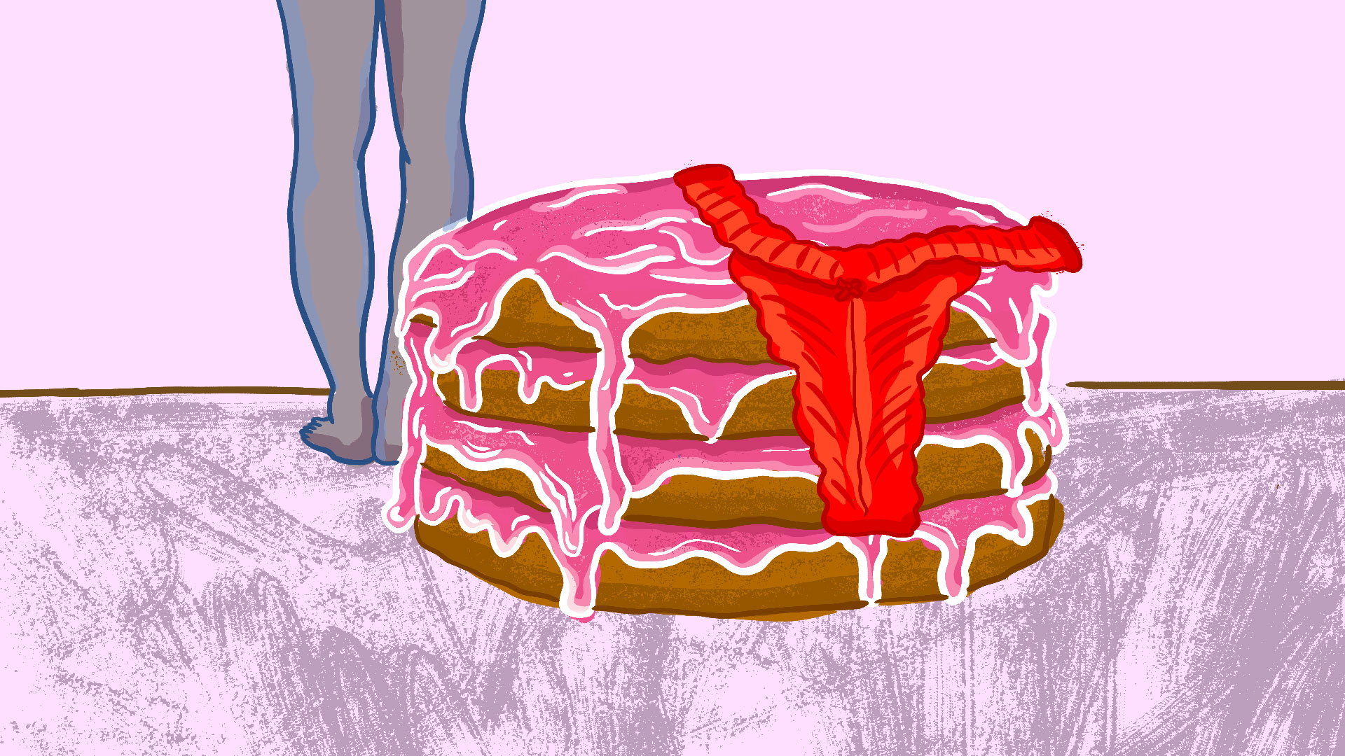 Cake-sitting. Like, sitting on a cake with a naked butt. I mean really sitting.