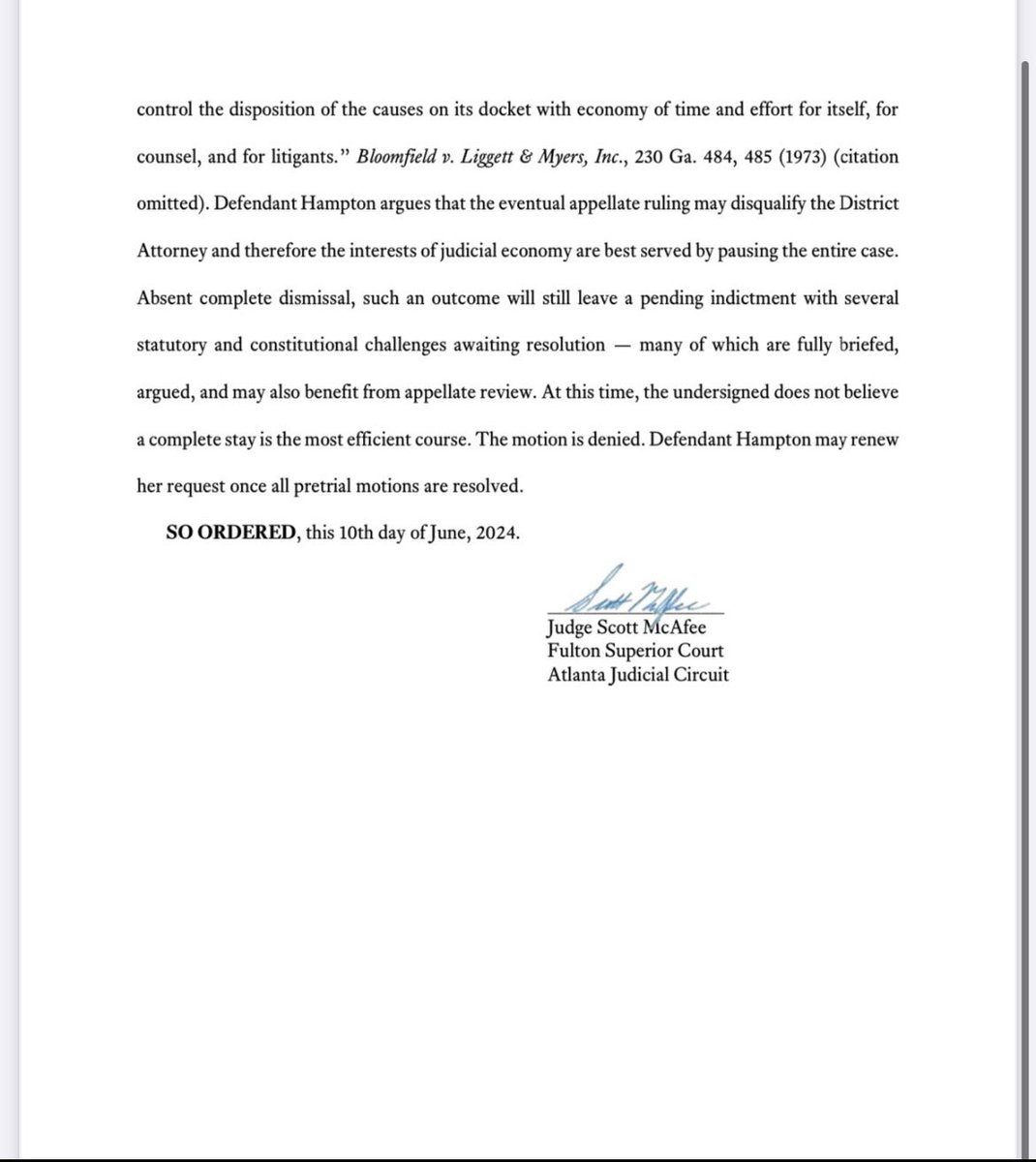 Also, the request to disqualify Willis failed. So I don’t see why she can’t get back to work; the only thing stopping her was the stay which was denied.