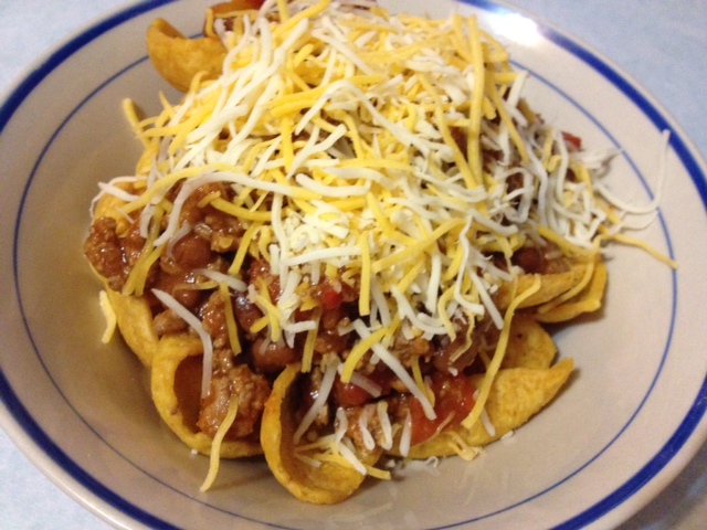 Cold weather means its time for chili. We make it fresh with Wick Fowler’s 2 Alarm chili kit when we have a few hours to let it simmer. We keep canned chili on hand too. It’s perfect for a quickFrito pie. Sometimes we come in cold and tired from a busy day and want a big bowl of chili. Right Now! Time to grab that can opener.