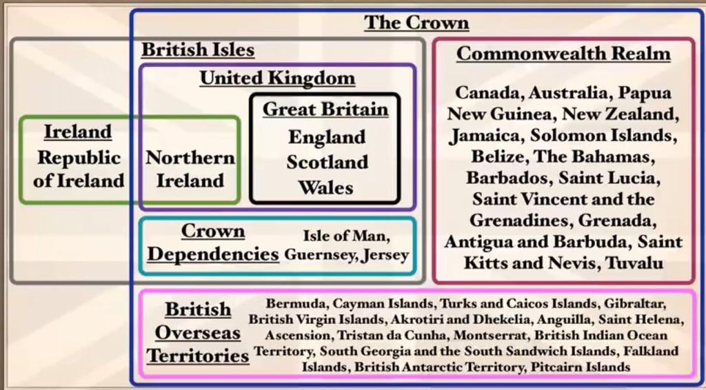 And then what are the ties between the UK and the Commonwealth… is there the right of free passage and work, like in the EU, or are they just close allies…? Do the dependencies and overseas territories get any sort of governance at all (do they have votes?)?