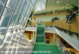 Another favorite: the law library at the University of Michigan. A stolid old building with a surprisingly light, airy underground modern extension lit by natural light all the way down due to a paved trench around it.