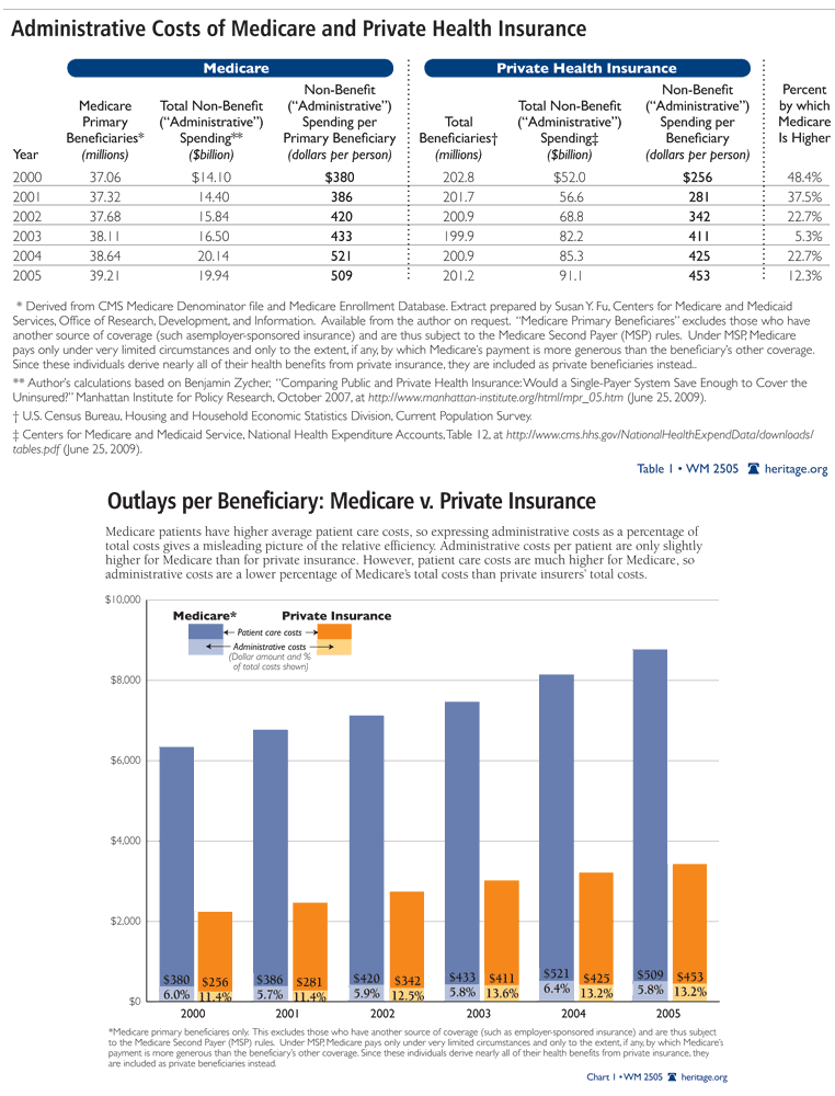 You claim that Medicare is much more efficient. It isn’t. Its administrative costs, per patient, are higher than private insurances’.