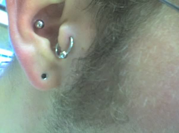 So as a replacement, I got my tragus and my conch directly across from it done, and in 6 months, I’ll put a bar through them. The nice lady told me that they make special ones for this that are slightly curved on one end to go through the tragus. She’s my hero.