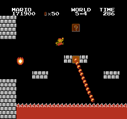 Like, there’s more than one place where you’re jumping from floating platform to floating platform, while timing your jump to avoid giant chains of fireballs.