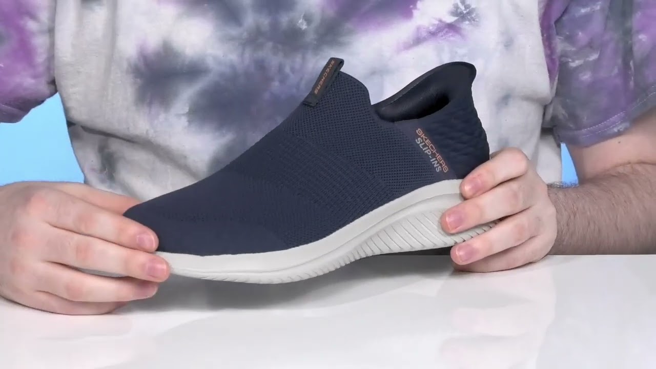 The difference with these Skechers – I know because I have a pair (they call them “slip-ins” to distinguish them from slip-ons, including their own slip-ons) is that you really can put them all the way on without using your hands in any way. The back is high and stiffened to give the front of your foot leverage (maybe not a great explanation, you really have to try them to understand it). Other sneaker-type slip-ons require you to pull up the back or run your finger around the back or use a shoe-horn. Maybe some people could put leather loafers on without touching them with their hands, if the back was stiff enough not to fold in.