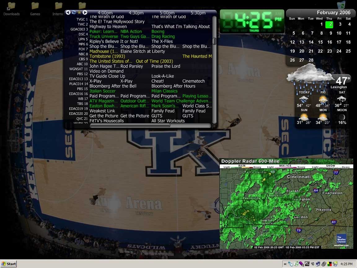 I had just opened them becuase Mon-Wed when I have most of my classes I use my tablet as a slate. Thus, if I have too much crap on my desktop it looks like this when I switch into slate mode. Since I don’t really use it in slate mode except for Mondays and Wednesdays I put those widgets up. As far as icons on my desktop go, I don’t have any except for the Recycling Bin and thats simply becuase I don’t know how to get rid of it.