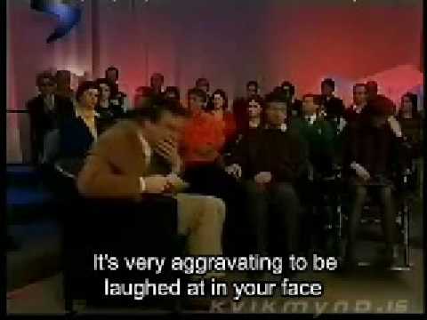 Did some research…apparently, the interviewer and show were real, but the interviewees (the lady in the wheelchair, the girly-voiced guy, and the gravelly-voiced guy are part of some comedy troupe who regularly sets up the unsuspected and televise the results.