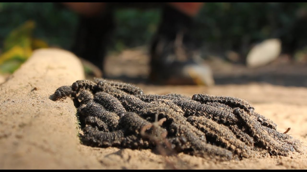 On a related note (does not sound like what the OP describes, but interesting enough to mention, there are caterpillars that walk along the ground as a group, walking over each others’ backs - allowing the group to move faster than any of the individuals in it are capable of travelling.