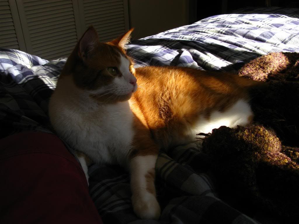We also have a lighter, more “buff” colored orange female, Luci, who just turned a year old (that’s her and her sister, Annie – sorry, I haven’t uploaded any newer pictures – she’s gotten a lot darker since that picture was taken, although not much bigger).