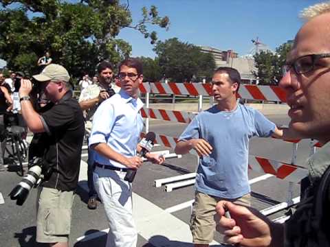 I like how the toolbag from Fox keeps saying, “Don’t you believe in freedom of speech?” Isn’t that exactly what the protestors are engaging in? It’s not like they’re trying to stop the Fox dude from speaking, they’re just blowing past him when he tries to get in their faces. Not wanting to talk to Fox News is anti-free speech?