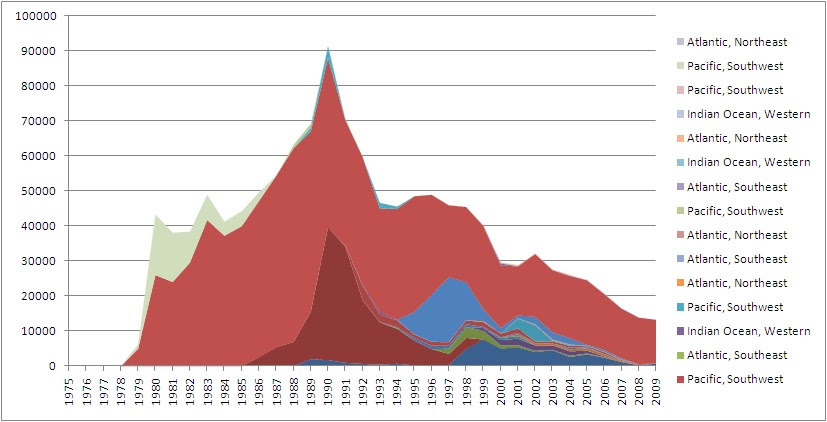 Correct me if I’m wrong – late '80s saw an explosion of Orange Roughy. Never heard of it before, trend seemed to have died down within a half decade, or so. Did it come from another planet, then return to its home world? I know the price exploded rapidly.