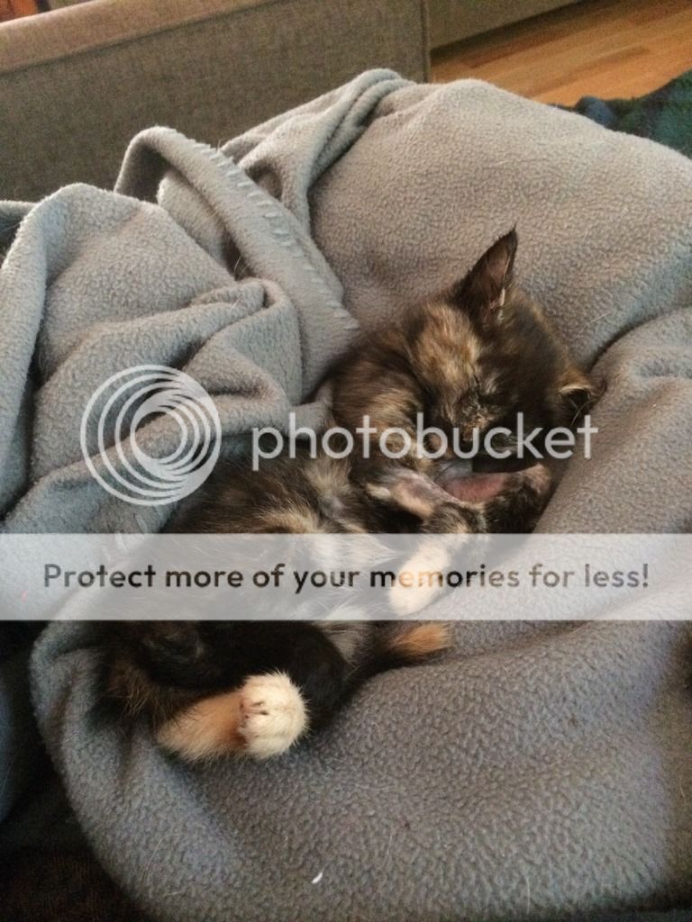 -She’s adjusting to her new home VERY well. She lives in my room, but has been exploring the upper hallway, and has apparently been venturing downstairs when no one’s around. She still runs most of the time when people walk, but when you’re sitting down she can be easily lured back out.