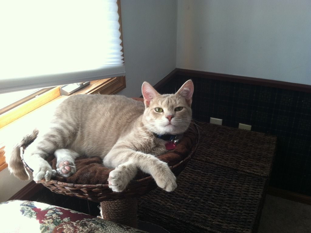Never mind all the other cats my family has had. Too many to list. Most were from the shelter, though in college I saw at a pet store and fell in love with a kitten who was all white, with peach ears, paws, and tail, and big blue eyes. He was named Danny, and slept in my hair. My parents *said *they didn’t want a kitten, but then dad picked him up. Heh.