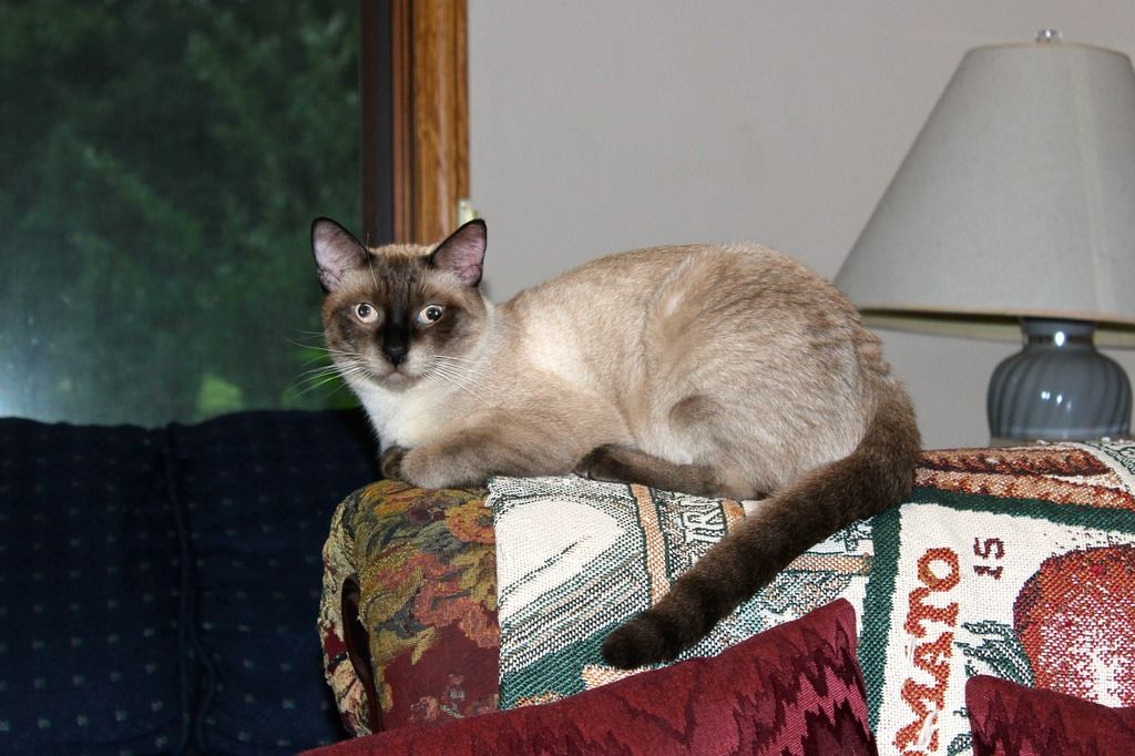 the Siamese are supposed to be siblings, but given the size difference and the white markings on Precious, I’m not convinced.
