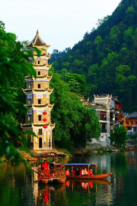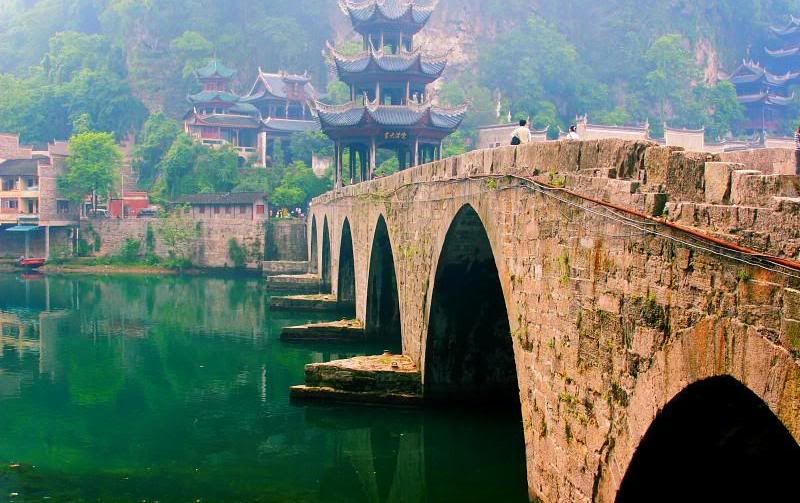 I found it. It’s Feng Huang Cheng, also known in English as “Pheonix city,” in Hunan. See this picture and compare with this. Some more: