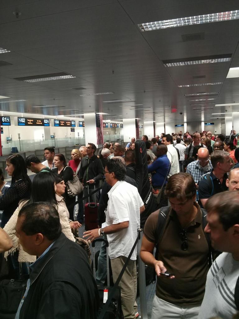 Ah, Miami. I once landed there about 5 minutes after a flight from Bogota, Colombia. They checked those passengers every which way from Friday before they finally got to us. Then they checked US in every way possible. Four bleeping hours worth of checking.