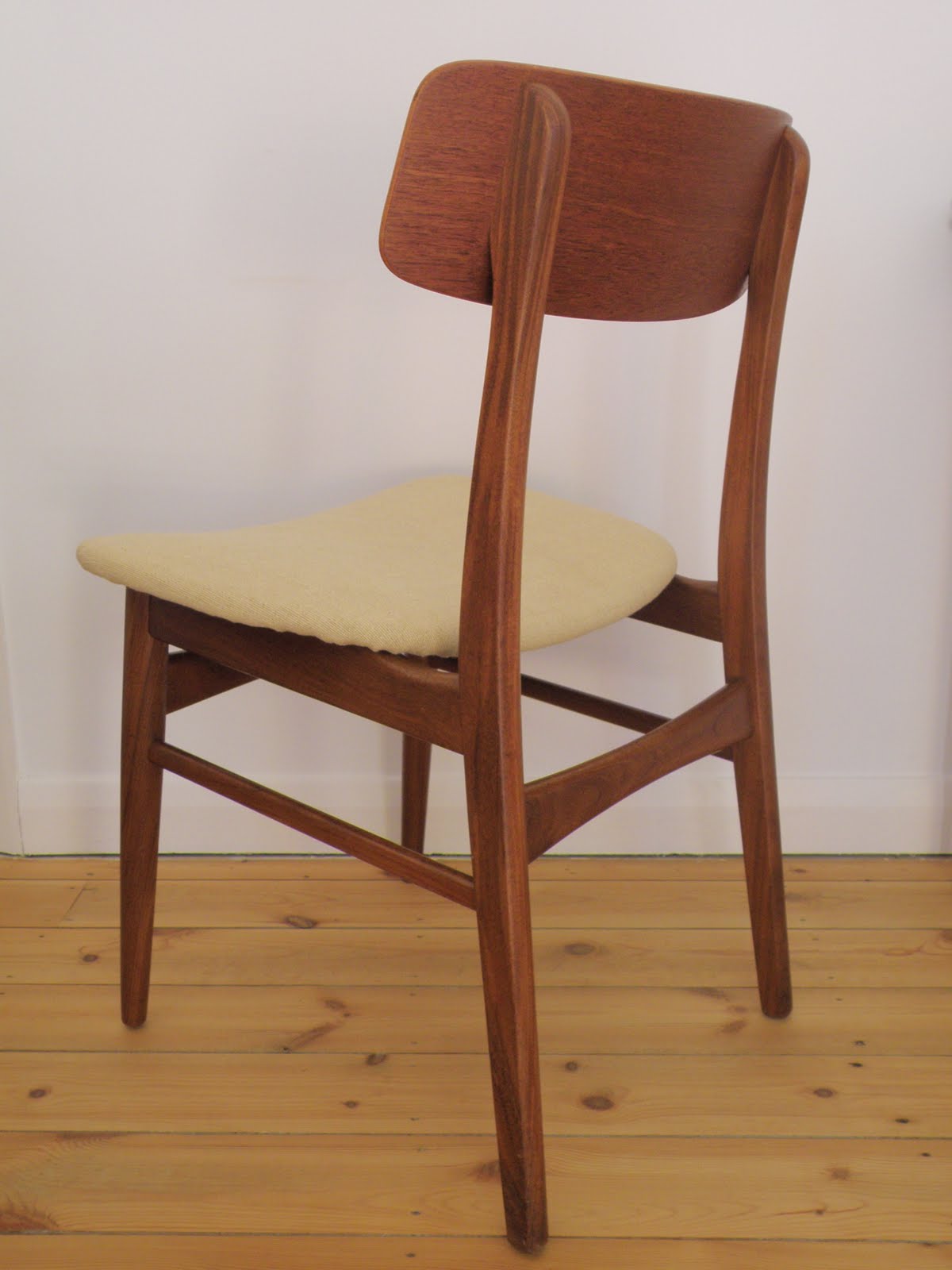 The Eameses didn’t do much in wood, and even then, when wood was used, it was always laminated. Fritz Hansen was another laminated wood designer, although he used metal frames and legs. This chair has a token bit of laminated wood - the back. The seat looks to be a simple slab of flat plywood, and the rest is ordinary lumber. It does have the design elements of the Farstrup, and matches the design in terms of materials and construction, however I suspect it is a copy of the general design rather than a genuine Farstrup. I’m pretty sure I have seen these chairs about here in Oz. One distinctive design element is the shape of the back, which is clearly different to the best known Farstrup, the oval back chair.