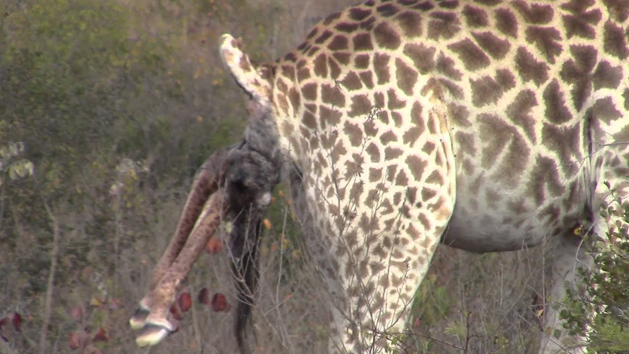 I think out in the wild, a giraffe would avoid giving birth in a location where she and her baby would be exposed and vulnerable. If she went into labor outside, her instincts would tell her to get back inside, in seclusion.