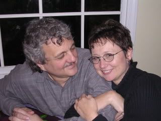 I think my husband is HANDSOME with a capital H, but this sort of thread is sorta amusing, since he and I are both on the backhill slope of attractiveness, age-wise. He’s 57 and I’m 46, so you know we’re not particularly hottie material. Here’s us about six years ago, right before we got married, c. 2003 I don’t appear to have anything more current of the both of us!