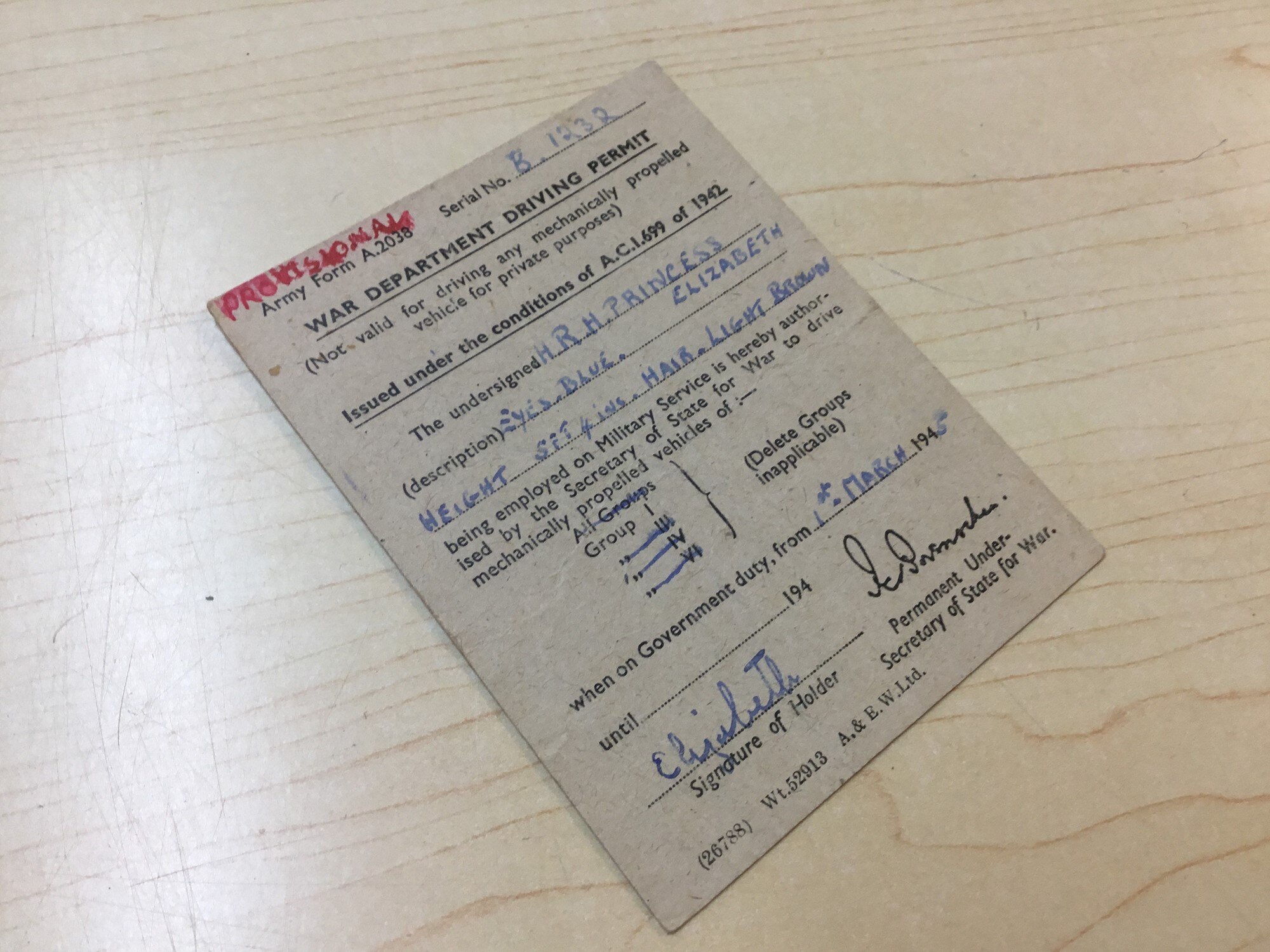 … and also exempt from civil as well as criminal proceedings, and from income tax and capital gains taxes, although the Queen voluntarily began to pay taxes in 1992, and always did have to pay VAT on purchases. The monarch (and the monarch alone) is also exempt from having to hold a driver’s license (Prince Philip did have to have one, and voluntarily gave it up after his accident). Queen Elizabeth did have a military driver’s license while serving in the military in 1945, listing her name as “HRH Princess Elizabeth” and bearing her signature, “Elizabeth”. It was the only driver’s license she ever held.