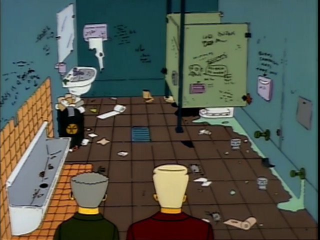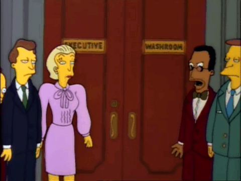 I got into there a few times, even as a summer temp college student, because the Vice President of the agency would toss his key out to anyone who claimed the regular men’s room was full up. It really was much nicer. Not quite like on The Simpsons when Homer is briefly given THE KEY, but it was cleaner, had nicer fixtures, more like a bathroom in a nice house.