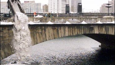 Back during the blizzards of '93 and '96 Philadelphia resorted to dumping snow off the bridges into the river.