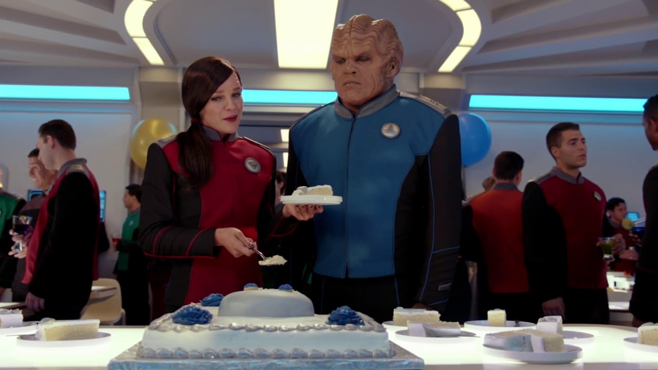 But we got it with Gordon and John right out of the gate. And between Mercer and Grayson. And between the two of them, and Gordon & John. And so on, and so forth. And Bortus’ total obliviousness is funny in its own right. I guess what I’m getting at is that a lot of the comedy isn’t just comedy for its own sake; it’s as much to develop the characters and their relationships as anything else.