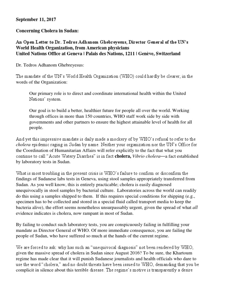It’s about the cover up of the cholera outbreak that WHO was complicit in.