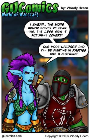Well, as a female who plays with female avatars I will admit I am scortchingly tired of all the idiots trying to get me to cyber sex with them. I can remember more times trying to do something in WoW and having clouds of dweebs around me like mosquitos or flies whispering me all sorts of crap. I swear, whenever there was a free month offer and it coincided with some high school vacation I spent more time reporting obsceneties than playing some days. I wish there had been an accomplishment point for reporting offensive idiots.