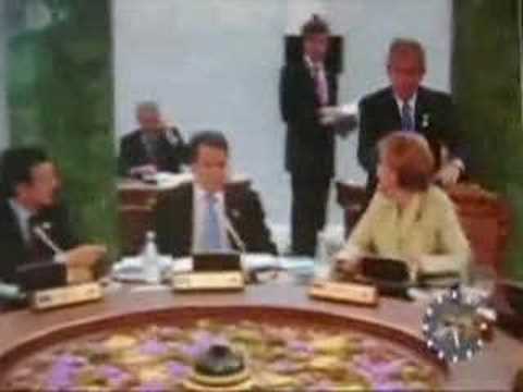 Bush has absolutely hated Spanish premier Zapatero since he withdrew the Spanish troops from Iraq and has made no effort to hide it, snubbing Zapatero at every chance he got. It got to the point where it was just a childish grudge. Bush is like a child who either he gets his way or takes his ball and goes home.