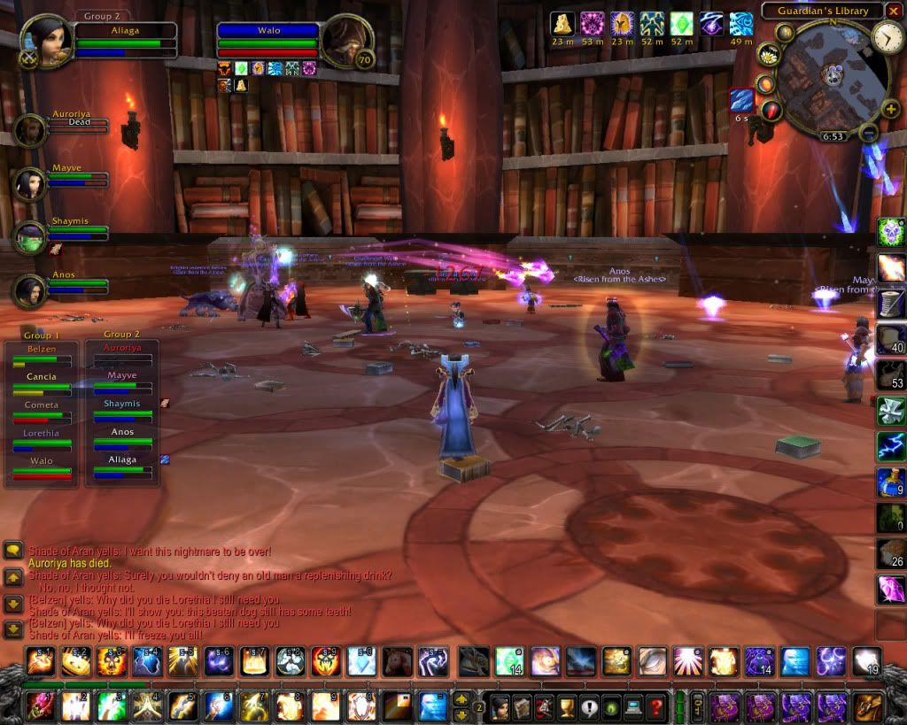 I’ve got a lot of pictures of Shade of Aran wipes in there for some reason. The one I picked is one that turned out well, thanks to combat rez and some luck. Our raid leader was a tank-spec druid who did quite well, and sometimes switched to dps spec for certain fights. He was usually MT
