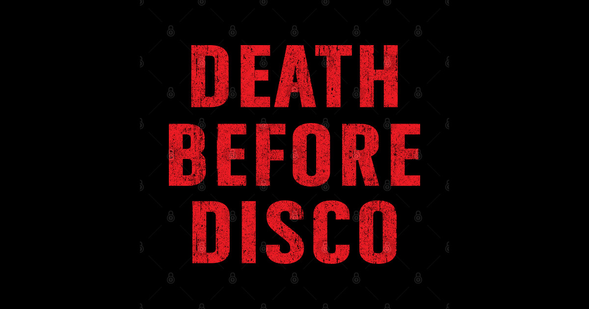 I was thinking about the scene in “Stripes” where the recruits get in trouble. Judge Reinhold is wearing a “Death Before Disco” tee shirt. Apparently this merch is available, including face masks…