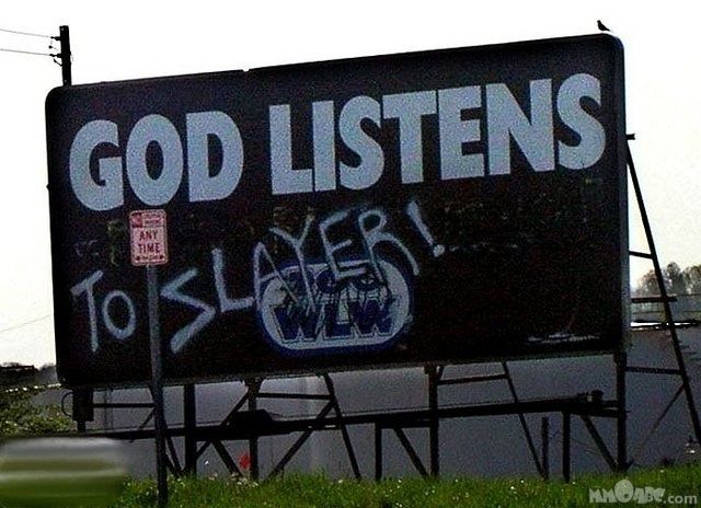 Everytime I see religious billboards (Atheist or Christian, or really any sect), I get a little pain in my Liver and a shot of adrenal pricklin’ along my spine and bad bad thoughts. Besides that, it’s the worst possible Propaganda, a commercial devoid of subtlety, style, and substance… Baaahhdd copy.
