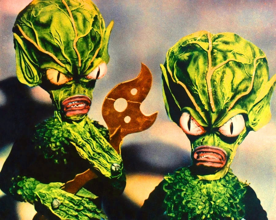 The “Cucumber Monster” (That’s what it was widely called at the time) was the creation of the legendary Paul Blaidell, who created a host of monsters, mostly for poverty-row American International Pictures. They were all done on the cheap, but impressive given the small amount of money he had to work with. And they weren’t all awful. His creatures for Invasion of the SaucerMen were the epitome of little green men awfulness.