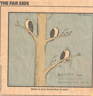Obligatory Far Side cartoon: http://4.bp.blogspot.com/_F7oVbX-PFfw/R5qn2N3L7GI/AAAAAAAAAY4/MLjKWLDquTk/s320/Birds+of+prey+know+they're+cool.jpg