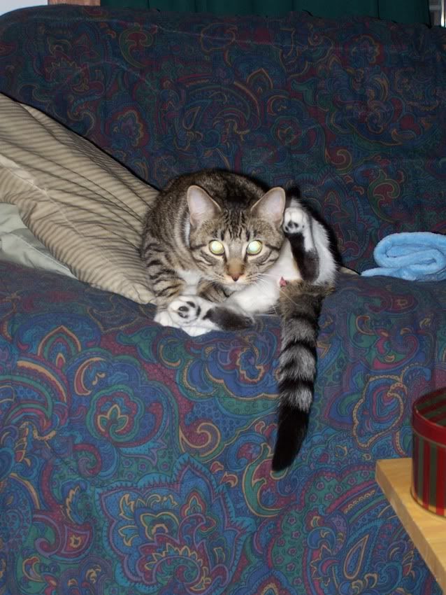 Fun pet-name-related story: for a while there we had two male Maine Coons, Al plus another even bigger guy named Clint. (Previous owners had named him after Clint Eastwood - apparently he made a squinty face on the drive home and was immediately so dubbed.) The one time I lugged both of them to the vet at the same time, I told the receptionist their names and was immediately accosted by a tiny little old lady in the waiting room, who wanted to know with a very disappointed and disapproving tone if I’d named them after Bill Clinton and Al Gore. I assured her that no such heathenry was involved (why yes, I do live in staunch Republican country, why do you ask?) and told her about Clint … but didn’t have the heart to tell her about Al.